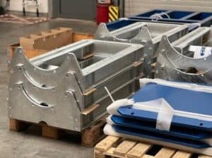 Aufgrund der besonderen und wichtigen Anwendung der Hidrostal-Pumpen ist es wichtig, die Rahmen auch gegen Korrosion zu schützen. Nach der Montage und dem Schweißen werden die Rahmen daher feuerverzinkt. In besonderen Fällen führen wir sogar eine doppelte Konservierung durch, indem wir nach der Verzinkung ein Beschichtungssystem in 3 Schichten auftragen.
